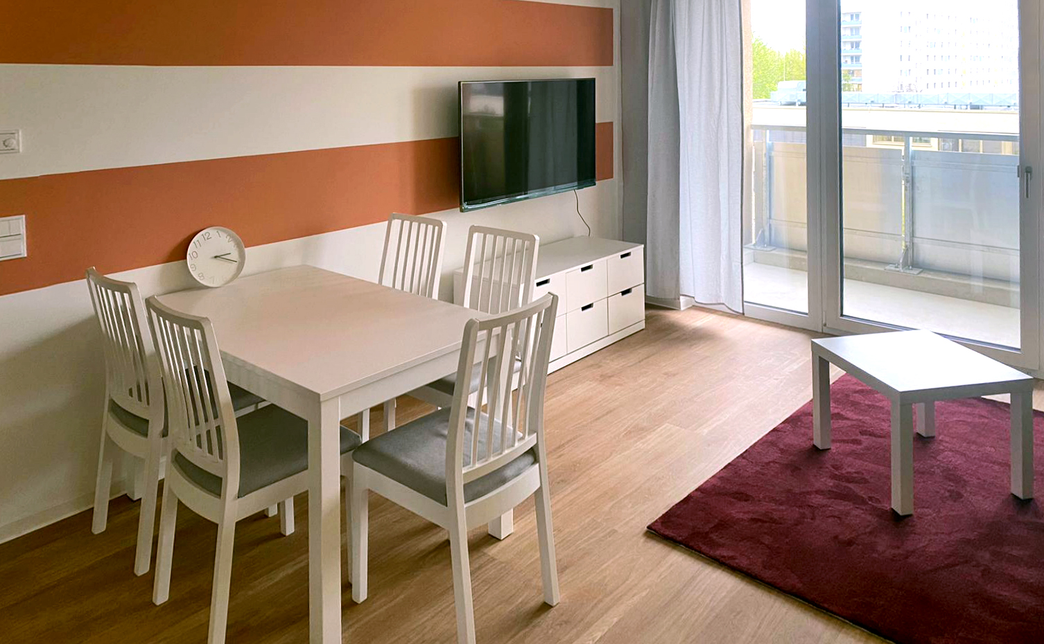 Die gemütlichen Wohngemeinschaften mit maximal drei Personen bieten jedem Bewohner die Möglichkeit sich in seinem Zimmer frei zu entfalten und gleichzeitig sind die Gemeinschaftsräume durch freundliche, autismusspezifische Farbkonzepte und offene Wohnküchen gestaltet. Selbst der anstrengendste Tag gerät in Vergessenheit, wenn die Einkäufe im Fahrstuhl bequem nach oben transportiert wurden, die müden Füße sich entweder auf dem Balkon, der Fußbodenheizung oder in der Badewanne entspannen können.